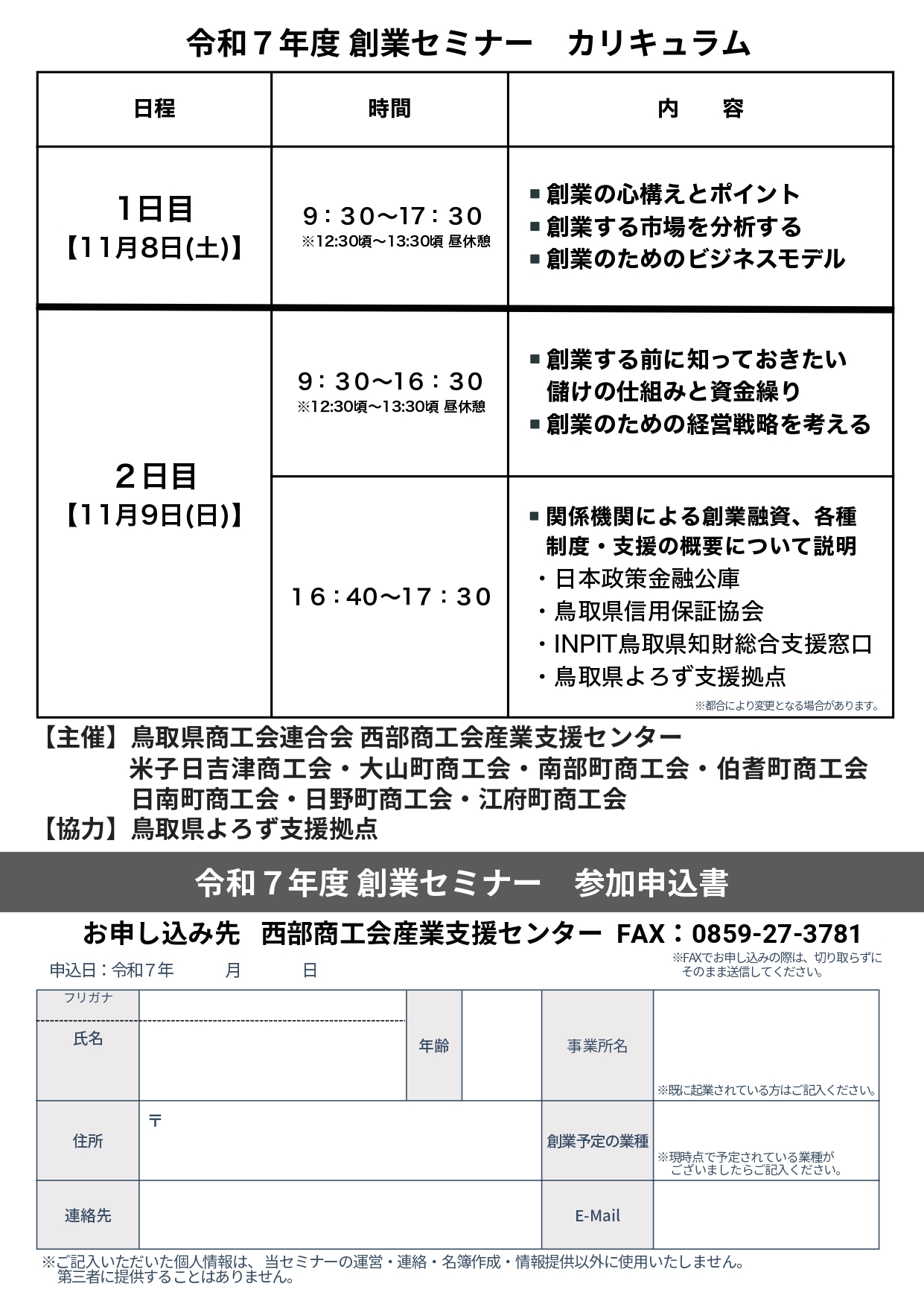 【主催】鳥取県商工会連合会/西部商工会産業支援センター/