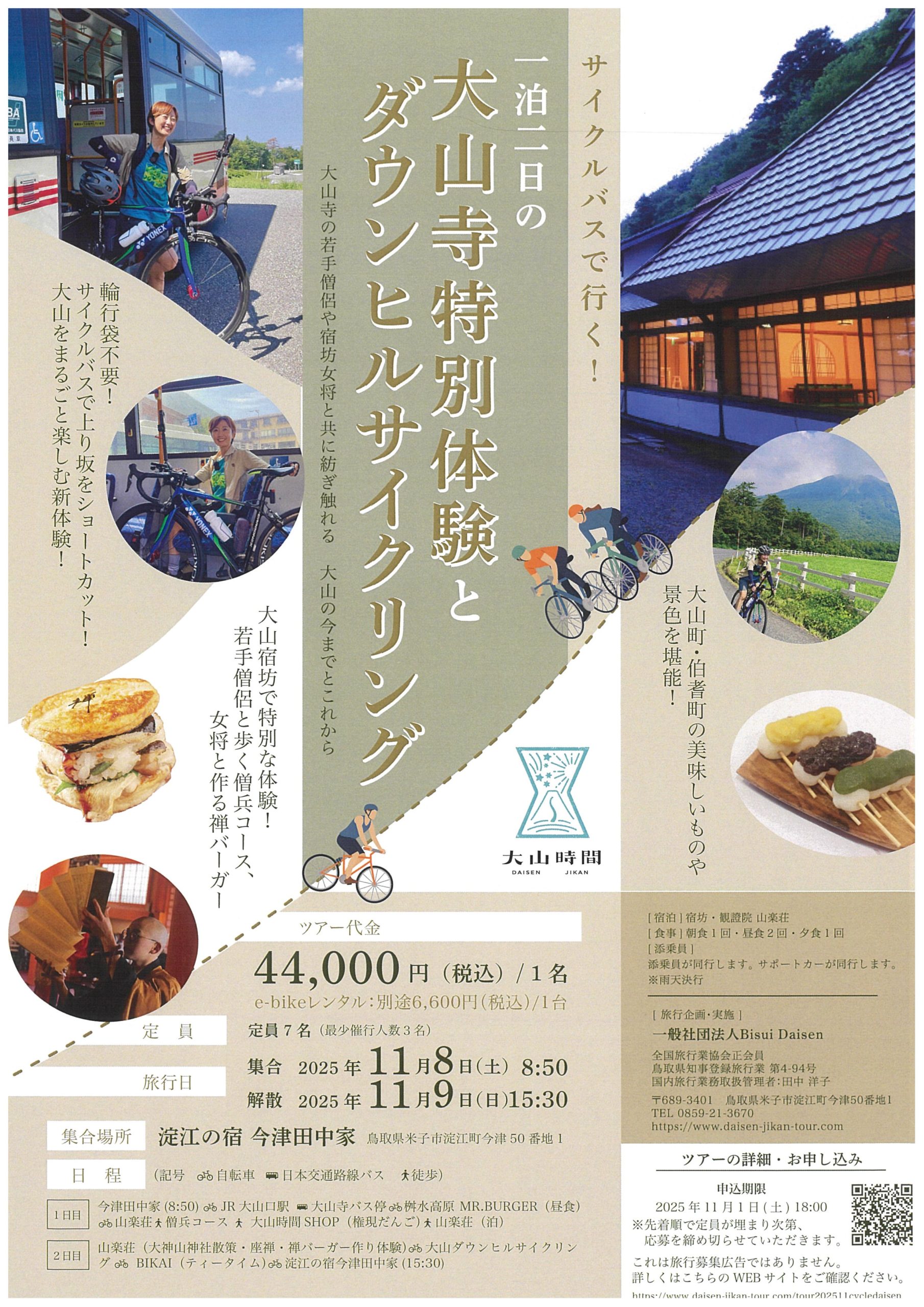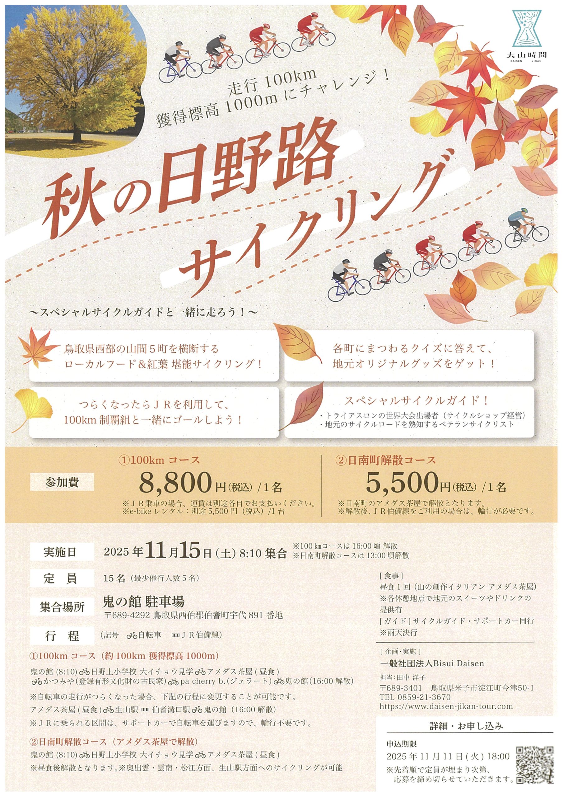 詳細は、ここをクリック!→https://www.daisen-jikan-tour.com/tour202511cycledaisen/