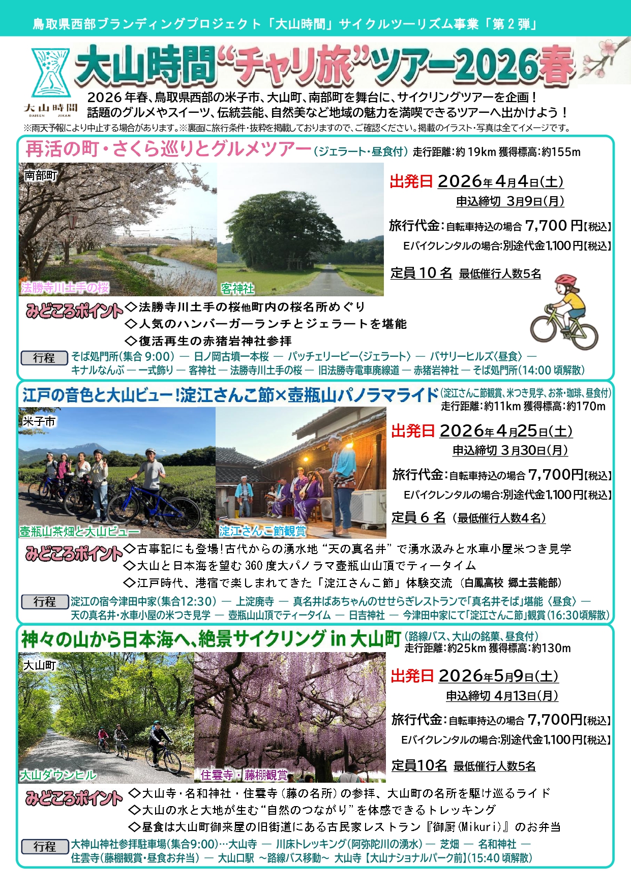 大山時間チャリ旅ツアー 第2弾 2026年春