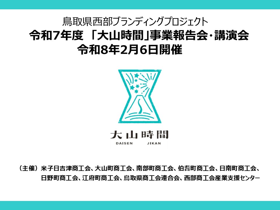 令和8年2月6日開催しました「令和7年度 鳥取県西部ブランディングプロジェクト『大山時間』報告会・講演会」のアーカイブ動画をYouTubeにて公開いたしました。